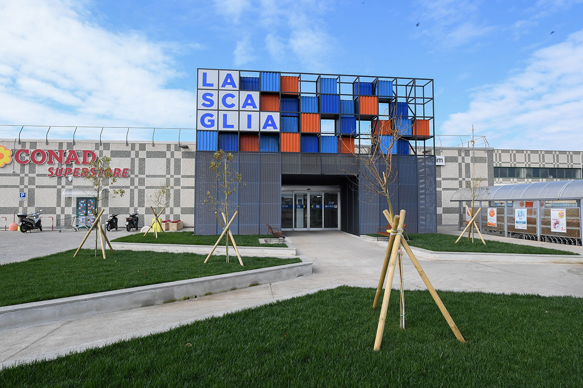 LA SCAGLIA si sviluppa su due livelli commerciali, ha un ampio e comodo parcheggio che ospita circa 1000 posti auto in parte coperti. La Galleria ha una superficie di 15.800 mq, comprensiva di 31 punti vendita tra i quali: Euronics, Deichmann, Upim, Game 7 Athletics, Sephora, Terranova e un Conad Supestore di 6.350 mq.