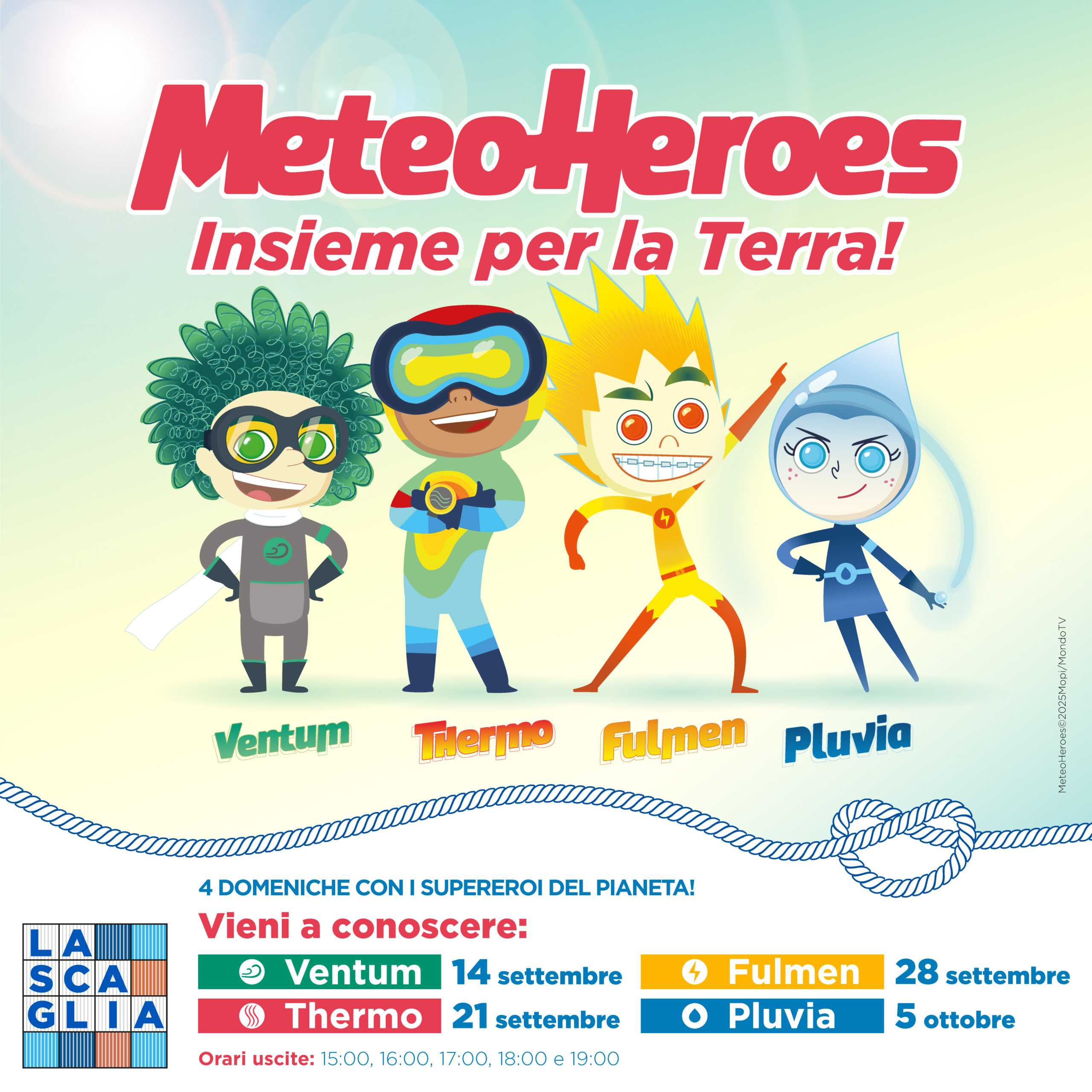 🤩 I MeteoHeroes arrivano al CC La Scaglia! Preparati a vivere 4 giornate entusiasmanti in compagnia degli eroi preferiti dai bambini: